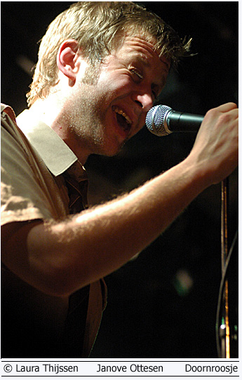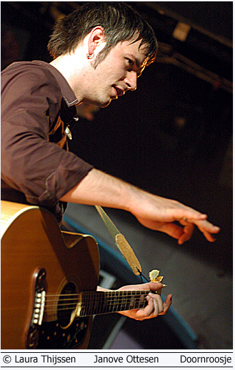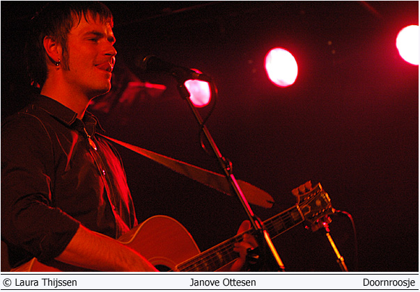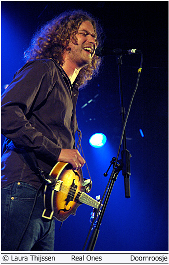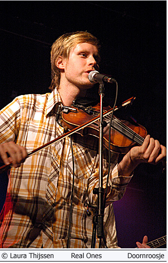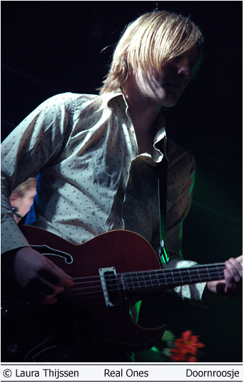 Janove Ottesen en Real Ones 21 april Doornroosje Lekkere jongens en hoge hakken 'Wat een lekkere jongens!', hoor ik iemand naast me zeggen als de Real Ones nauwelijks een nummer hebben gespeeld.'Lekker energiek cluppie', is wat ik zelf eigenlijk in gedachte heb. Het publiek lijkt het niet direct met me eens te zijn. De kat wordt flink uit de boom gekeken en dat terwijl het enthousiasme van het podium afstraalt. De vijf vrienden spelen al samen sinds hun jeugd en dat is te merken. Ze zijn zo op elkaar ingespeeld dat er voldoende ruimte is om ook echt plezier te hebben op het podium. Al winkelend bij verschillende muziekstijlen hebben ze hun eigen stijl weten te ontwikkelen. Een frisse mix van pop en folk met vleugjes country en zelfs wat latin. Na een paar nummers giet het publiek de mix gretig achterover en ze genieten er zichtbaar van.